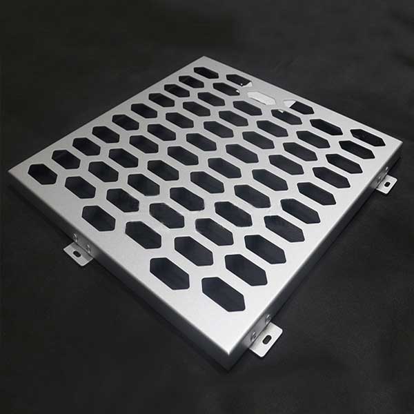 與常規(guī)鋁單板相比,沖孔鋁單板的特征就是表面形狀各異的沖孔(包括圓孔、方孔、五角星、六邊形孔等),裝飾效果突出,也能夠在一定程度上起到降低噪音的作用。集裝飾性與實(shí)用性于一體,沖孔鋁單板在工程裝飾中使用的越來(lái)越多。