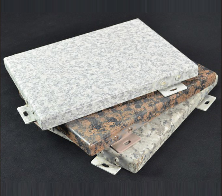 仿石紋氟碳鋁單板的主要特征是鋁單板表面逼真的石紋色,裝飾效果喜人,且質(zhì)量輕、安裝方便,幾乎可以替代大理石這種幕墻材料。它主要通過熱轉印等工藝,把石紋色轉印到鋁板表面,然后再噴上氟碳罩光漆,經(jīng)過多次噴涂和烘烤,終客戶定制的石紋效果。